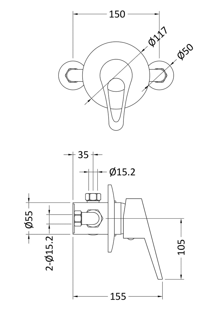 Minimalist sleek design. Can be exposed or concealed using cover plate provided15mm compression inlets. 1/2" BSP outlet. Excellent flow rates - even at low pressure. Manufactured from solid brass.