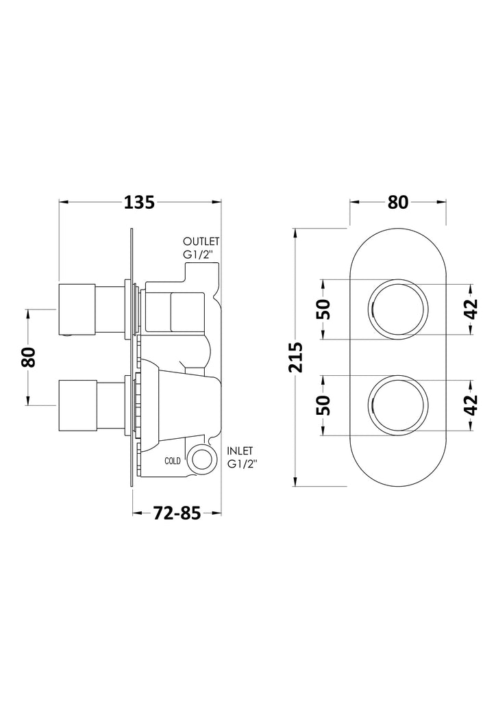 Minimalist sleek design. Can be fitted vertically or horizontally. Accurate flow control. Thermostatic control to +/- 2 to 3 °C even if the water pressure fluctuates. Full thermal protection to prevent scalding in the event of hot or cold water shut off. In the event of hot or cold water failure the valve will shut down as per the relevant standard. The unique cartridge is highly resistant to calcium build up - even in hard water areas. Our valves are suitable for use with all systems: gravity fed pumped unvented high pressure or fully modulated combi-boilers. Excellent flow rates - even at low pressure. The cartridge is fully reversible meaning if hot and cold supplies are the wrong way round it doesn't need re-plumbing. Simply remove the cartridge turn 180° and replace. Manufactured from high quality brass & ABS.