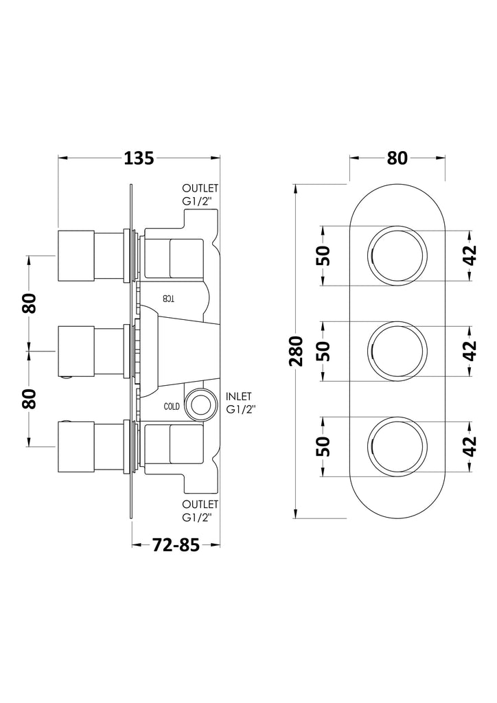 Minimalist sleek design. Can be fitted vertically or horizontally. Accurate flow control. Thermostatic control to +/- 2 degrees even if the water pressure fluctuates. Full thermal protection to prevent scalding in the event of hot or cold water shut off. In the event of hot or cold water failure the valve will shut down as per the relevant standard. The unique cartridge is highly resistant to calcium build up - even in hard water areas. Our valves are suitable for use with all systems: gravity fed pumped unvented high pressure or fully modulated combi-boilers. Excellent flow rates - even at low pressure. The cartridge is fully reversible meaning if hot and cold supplies are the wrong way round it doesn't need re-plumbing. Simply remove the cartridge turn 180° and replace. Manufactured from high quality brass & ABS.