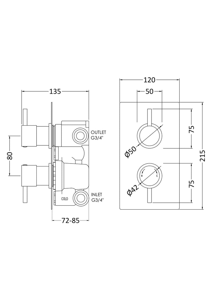 Minimalist sleek design. Can be fitted vertically or horizontally. Accurate flow control. Thermostatic control to +/- 2 degrees even if the water pressure fluctuates. Full thermal protection to prevent scalding in the event of hot or cold water shut off. In the event of hot or cold water failure the valve will shut down as per the relevant standard. The unique cartridge is highly resistant to calcium build up - even in hard water areas. Our valves are suitable for medium pressure water systems. The cartridge is fully reversible meaning if hot and cold supplies are the wrong way round it doesn't need re-plumbing. Simply remove the cartridge turn 180° and replace. Manufactured from high quality brass & ABS.