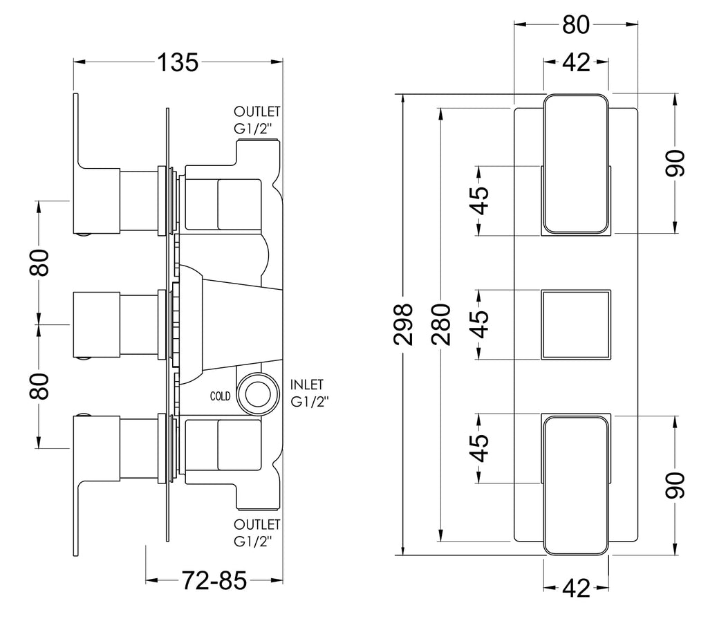 Minimalist sleek design. Can be fitted vertically or horizontally. Accurate flow control. Thermostatic control to +/- 2 degrees even if the water pressure fluctuates. Full thermal protection to prevent scalding in the event of hot or cold water shut off. In the event of hot or cold water failure the valve will shut down as per the relevant standard. The unique cartridge is highly resistant to calcium build up - even in hard water areas. Our valves are suitable for use with all systems: gravity fed pumped unvented high pressure or fully modulated combi-boilers. Excellent flow rates - even at low pressure. The cartridge is fully reversible meaning if hot and cold supplies are the wrong way round it doesn't need re-plumbing. Simply remove the cartridge turn 180° and replace. Manufactured from high quality brass & ABS.