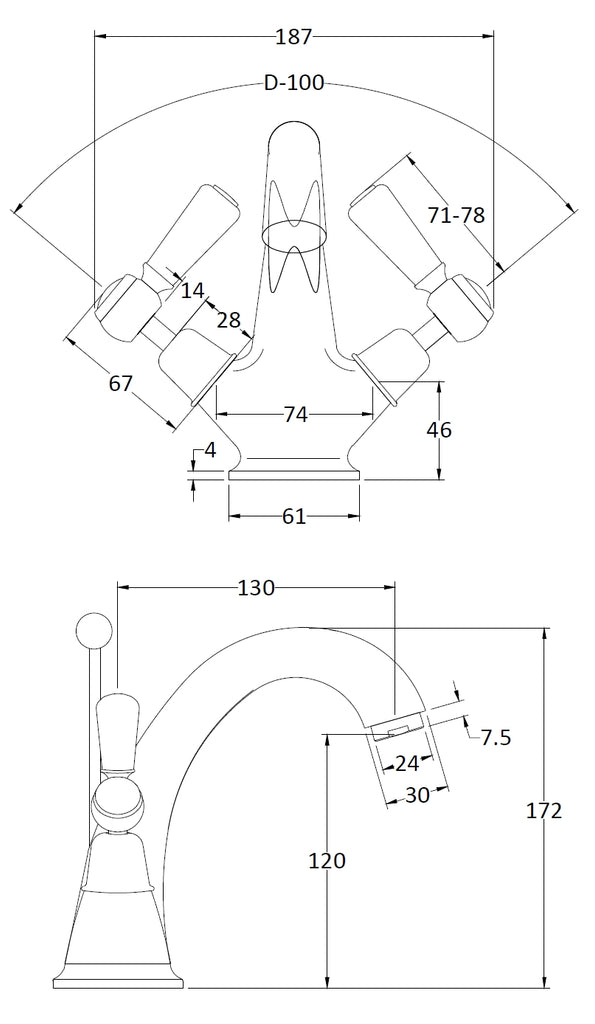 Luxury ceramic lever handle. Traditional domed collar. Suitable for low pressure systems. Ceramic disc technology for long life and smooth operation. High quality brass internals with luxury chrome finish.