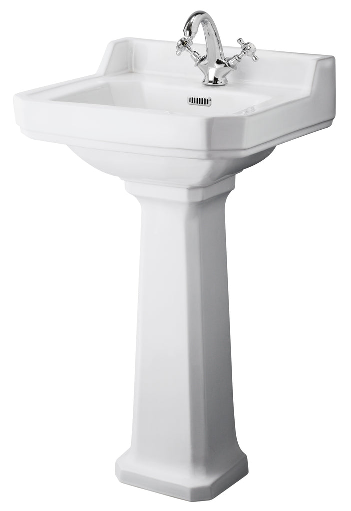 Bring an early Edwardian sensibility to your bathroom with this traditional basin.. This comfort height design is perfect for taller people or individuals with mobility restrictions.. Supplied with a full pedestal for a classic look. Manufactured from vitreous china.