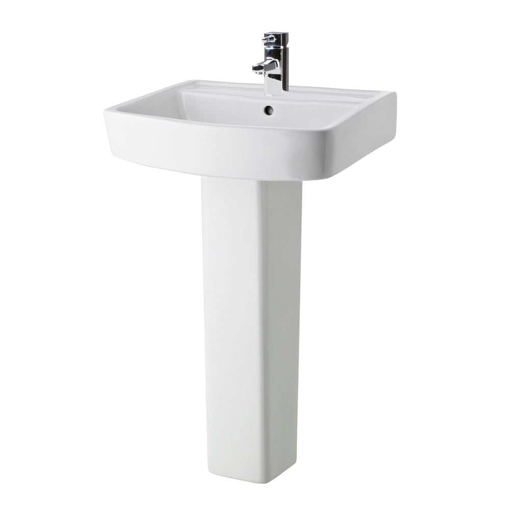 Stunning angular design creates the ultimate contemporary feel to your room. Contemporary basin design gives ample washing space. Full pedestal for a classic look. Co-ordinating pan options available. Manufactured from high quality vitreous china.