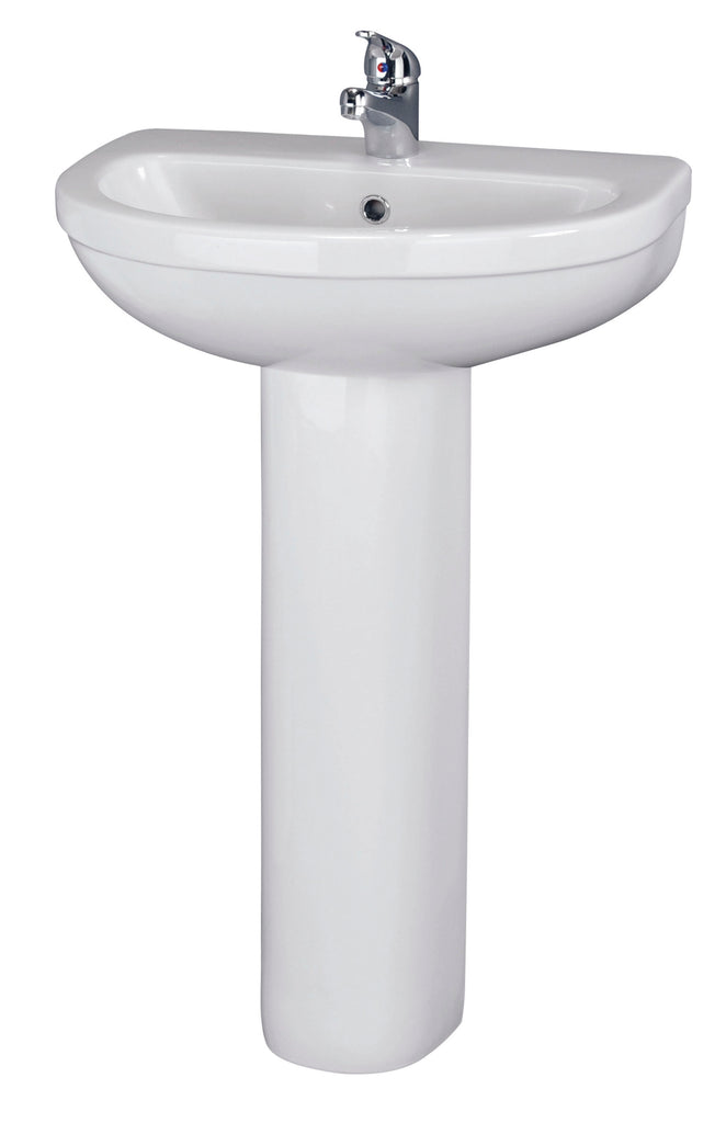 Modern curves creating a clean neat design. Full pedestal for a classic look. 1 tap hole basin. Co-ordinating pan options available. Made from quality vitreous china.
