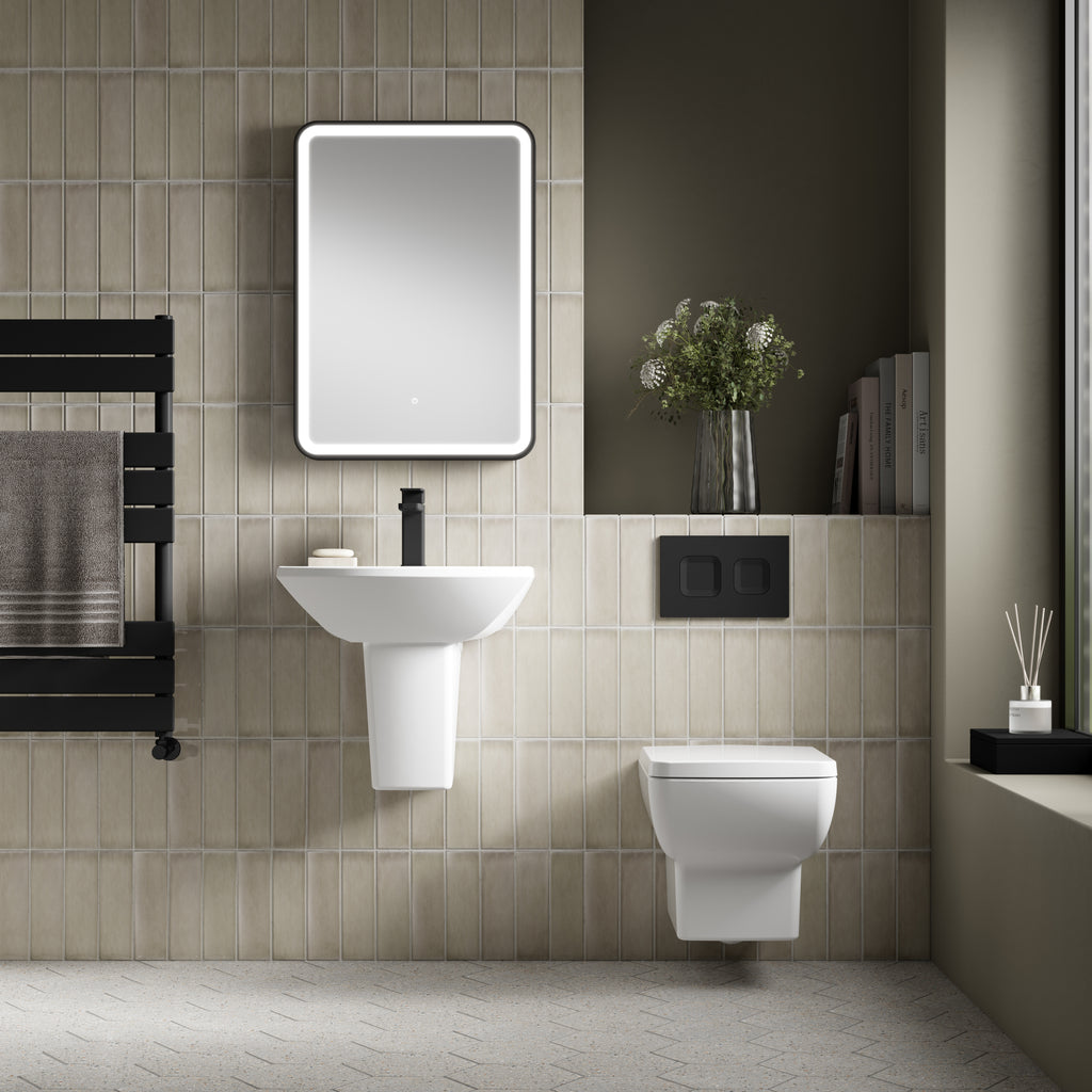 The soft square forms are an ideal balance between contemporary and organic design. Semi pedestal makes the bathroom easier to clean. Co-ordinating pan options available. Manufactured from quality vitreous china.