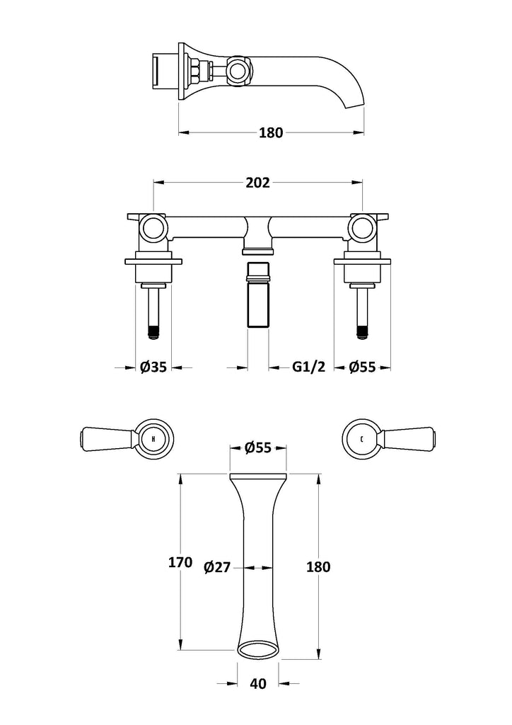 Impressive wall mounted basin mixer incorporating luxury period design with the latest technology. Features ceramic disc technology and High quality brass internals with a luxury chrome finish. Lever taps giving an authentic traditional look whilst being easy to use.
