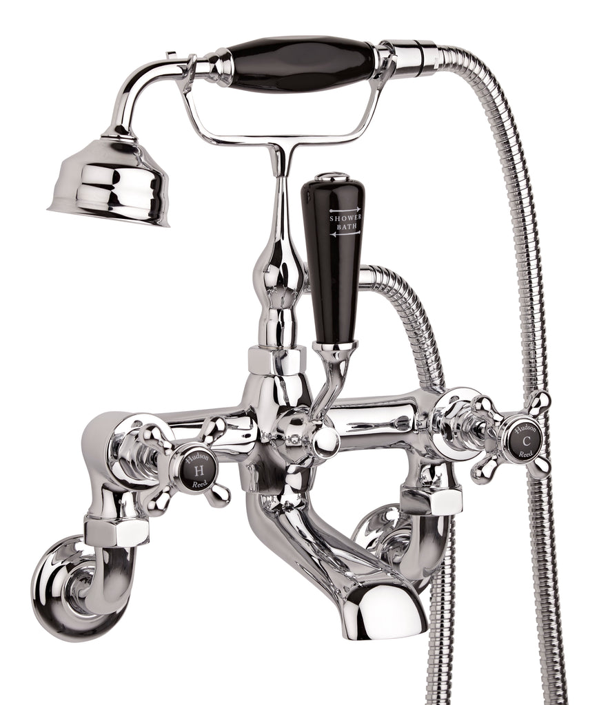 Luxury crosshead handle with coloured indices. Traditional hexagonal collar. Includes shower kit. Suitable for low pressure systems. Ceramic disc technology for long life and smooth operation. High quality brass internals with luxury chrome finish.
