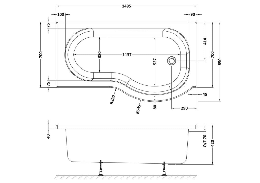 Suitable for use with a bath screen to create a shower enclosure, a perfect space saving option.Designed and built to the highest quality.Un-drilled.Supplied with leg set.Bath panels sold separately