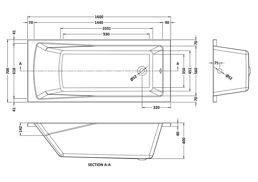 Square single ended bath with space saving size options .Designed and built to the highest quality. Acrylic.Un-drilled.Supplied with leg set.Suitable for use with bath screens.Choose from our range of bath panels to create the perfect look