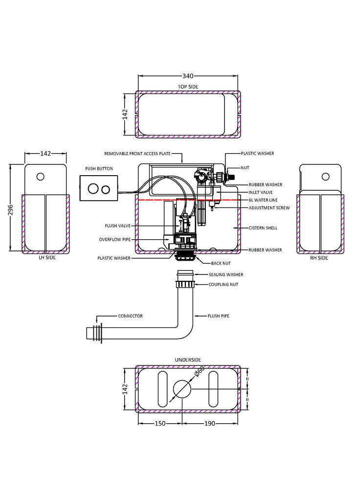 NUIE Pneumatic Dual Flush Universal Access Concealed Cistern