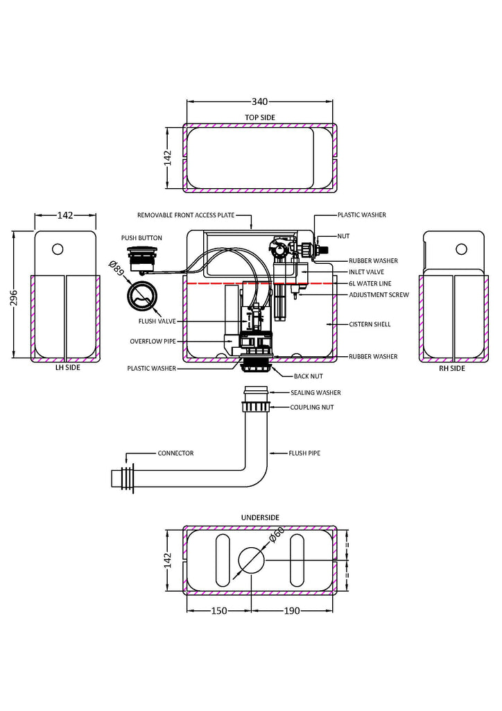NUIE Pneumatic Dual Flush Universal Access Concealed Cistern