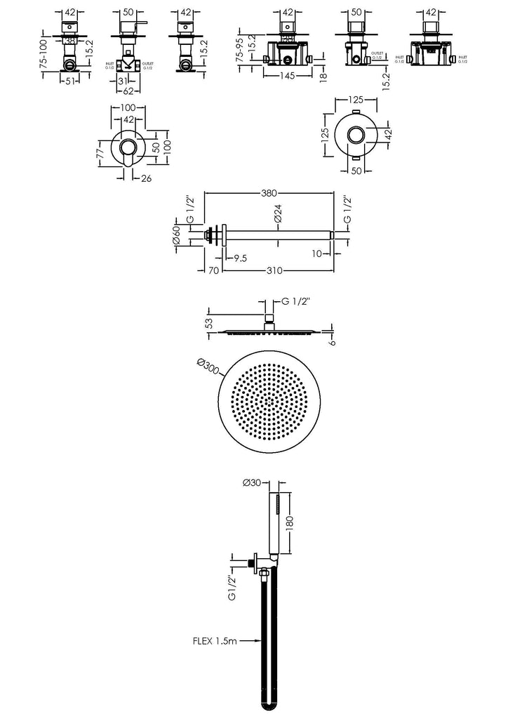Flexible design, giving you the opportunity to position the individual products to your own requirements. Beautiful Chrome Finish. Luxury Designs . Thermostatic temperature control. Divert between outlets.