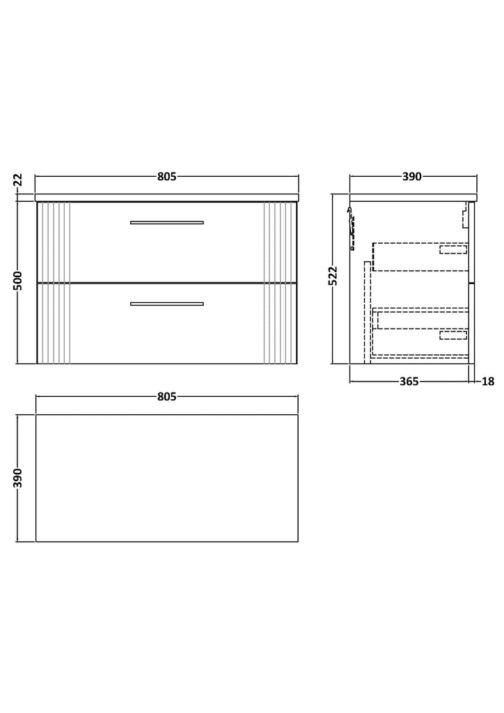 NUIE 800 Wall Hung 2-Drawer Vanity & Laminate Worktop