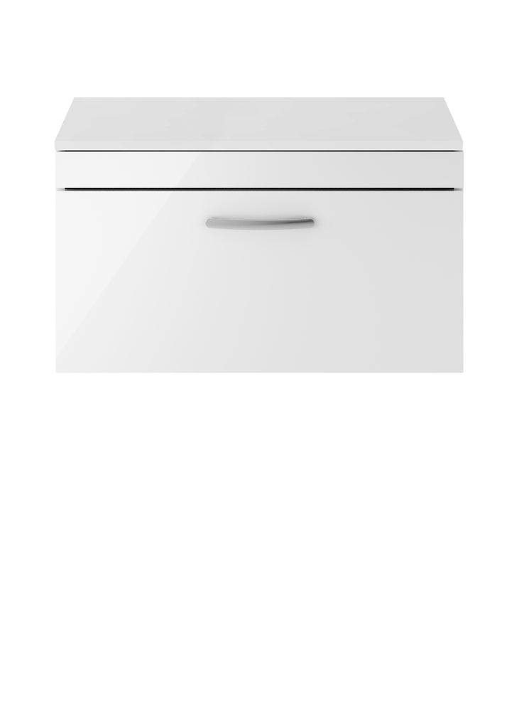Supplied with high quality matching worktop for use with any of our vessel basins. Vessel sold separately. This sleek gloss white finish compliments any modern bathroom to create a designer look. This wall hung unit creates more space in your bathroom giving the illusion of a bigger bathroom. This unit has soft close drawers which limits the daily wear and tear and provides a quieter closing action. Colour co-ordinate your unit with a gloss white WC unit.
