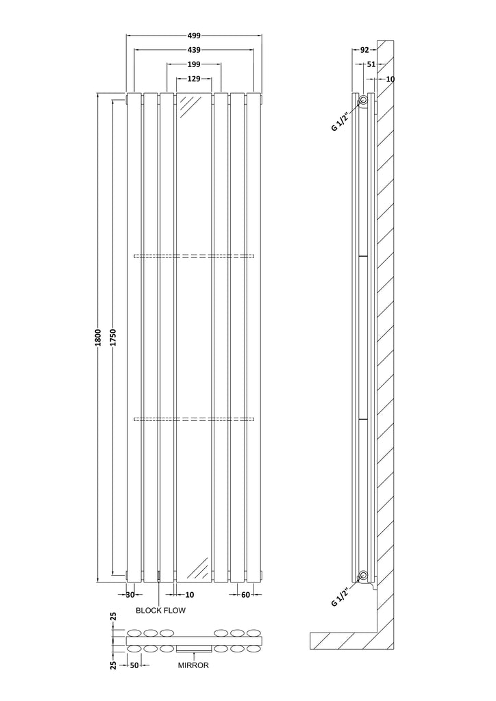 This rounded edged radiator will be a classic and simplistic feature in any setting. Supplied with mirror. All heating products come complete with fixing screws. Valves sold separately. After installating any new radiators; when refilling the system it is recommended a suitable inhibitor is used. All tappings are 1/2 British Standard Pipe. We recommend pipework is not installed until receipt of radiator or heated towel rail.
