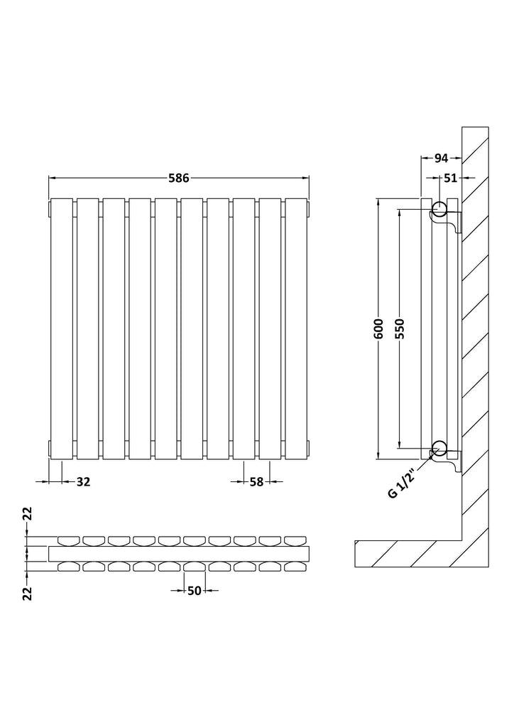 Add a stylish feature to any room with this satin white radiator. All heating products come complete with fixing screws. Valves sold separately. After installating any new radiators; when refilling the system it is recommended a suitable inhibitor is used. All tappings are 1/2 British Standard Pipe. We recommend pipework is not installed until receipt of radiator or heated towel rail.