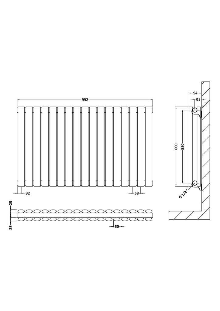 NUIE Horizontal Double Panel Radiator 600 x 992