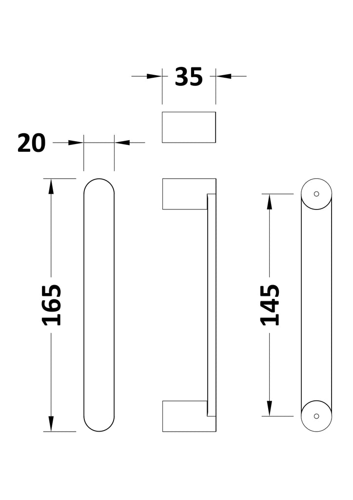 Rounded chrome handle for use with Pacific shower doors and enclosures.