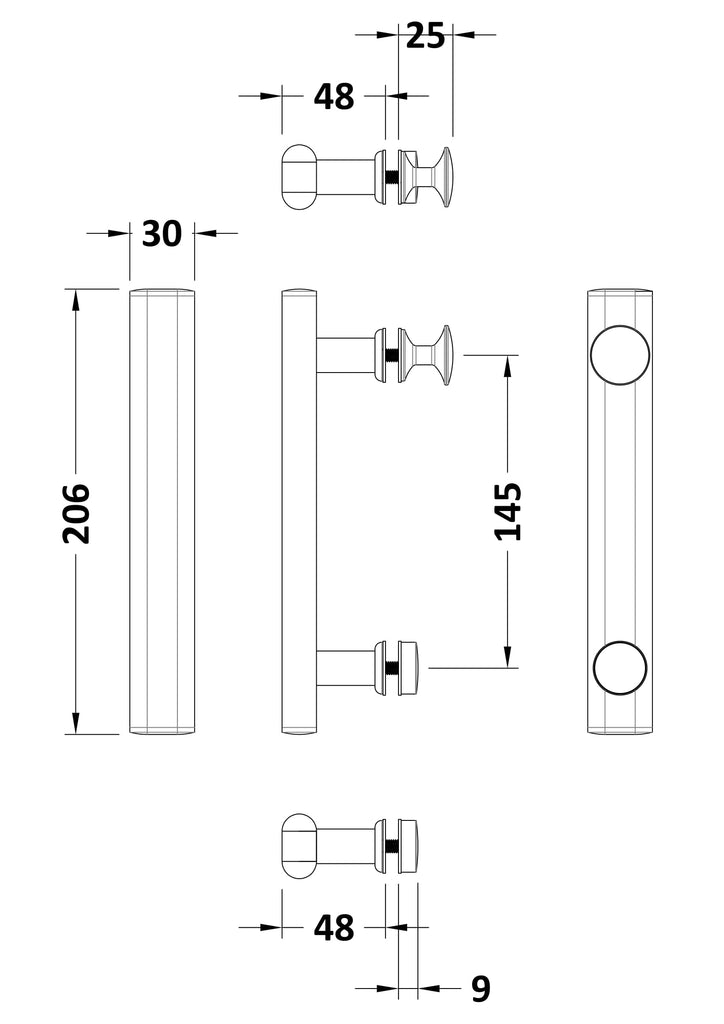 Square chrome handle for use with Pacific shower doors and enclosures.