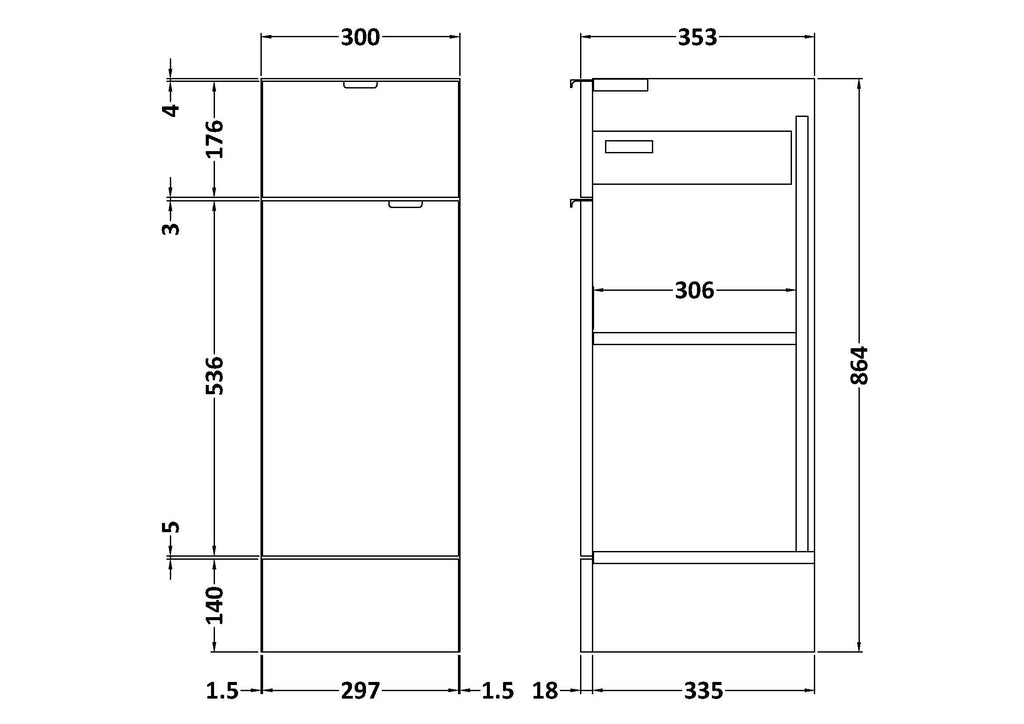 The unique combination of the anthracite finish and natural wood grain creates a focal point in your bathroom. Our full depth units give ample storage, perfect for a busy family bathroom. This unit is ideal for adding extra storage while colour co-ordinating with your other units. Soft close doors limit the daily wear and tear and provides a quieter closing action.