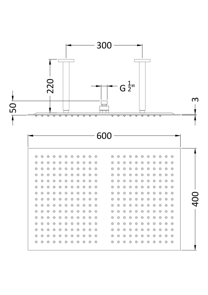 Rectangular minimalist design. Includes ceiling mounting arm. Manufactured from stainless steel for durability.