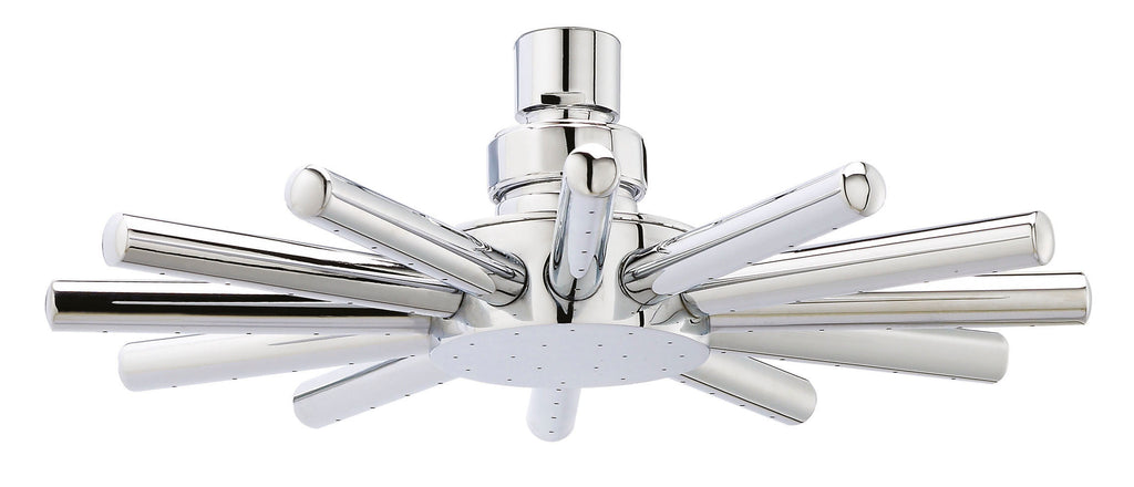 Unique Cloudburst design. Manufactured from solid brass with a luxury chrome finish. Suitable for wall mounted or ceiling arms.