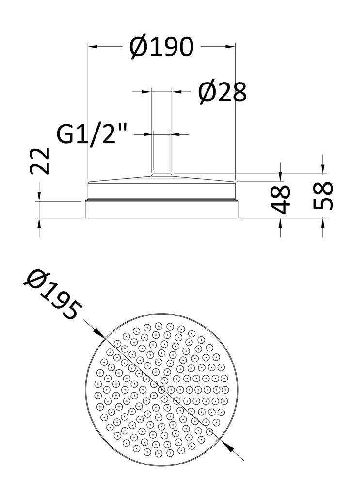 Round traditional design. Manufactured from solid brass with a luxury chrome finish. 1/2" BSP connections. Suitable for wall mounted or ceiling arms.