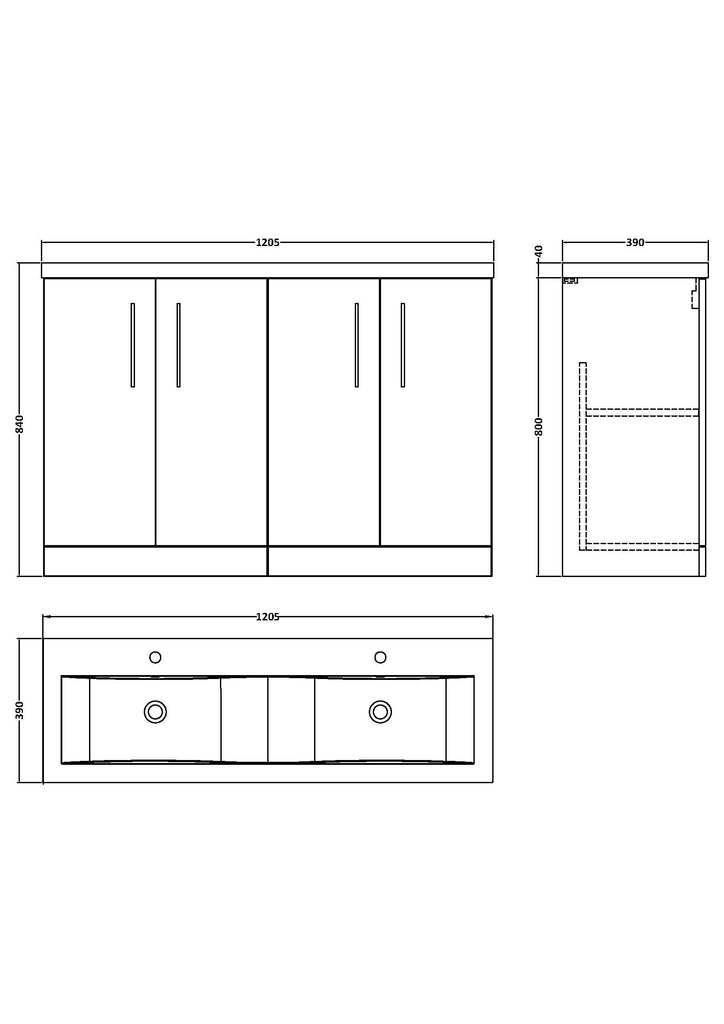 NUIE 1200mm Floor Standing 4 Door Vanity & Double Basin