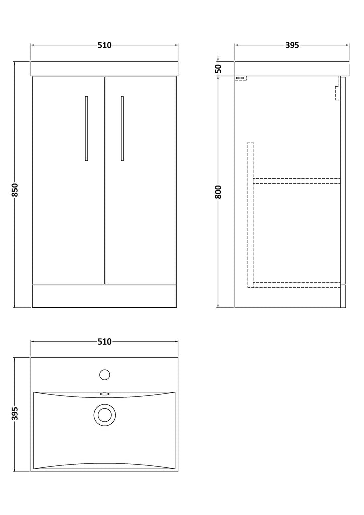 NUIE 500mm Floor Standing 2 Door Vanity & Basin 3