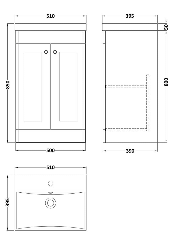 NUIE 500mm Floor Standing 2 Door Vanity & Basin 3