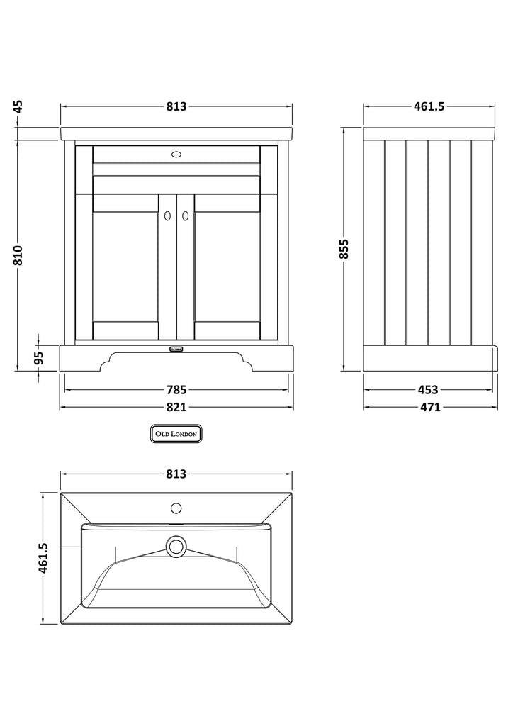 Hudson Reed 800mm 2-Door Unit & Contemporary Fireclay Basin 1TH