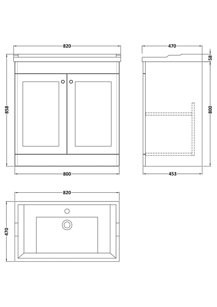 NUIE 800mm Floor Standing 2 Door Vanity & Basin 1TH