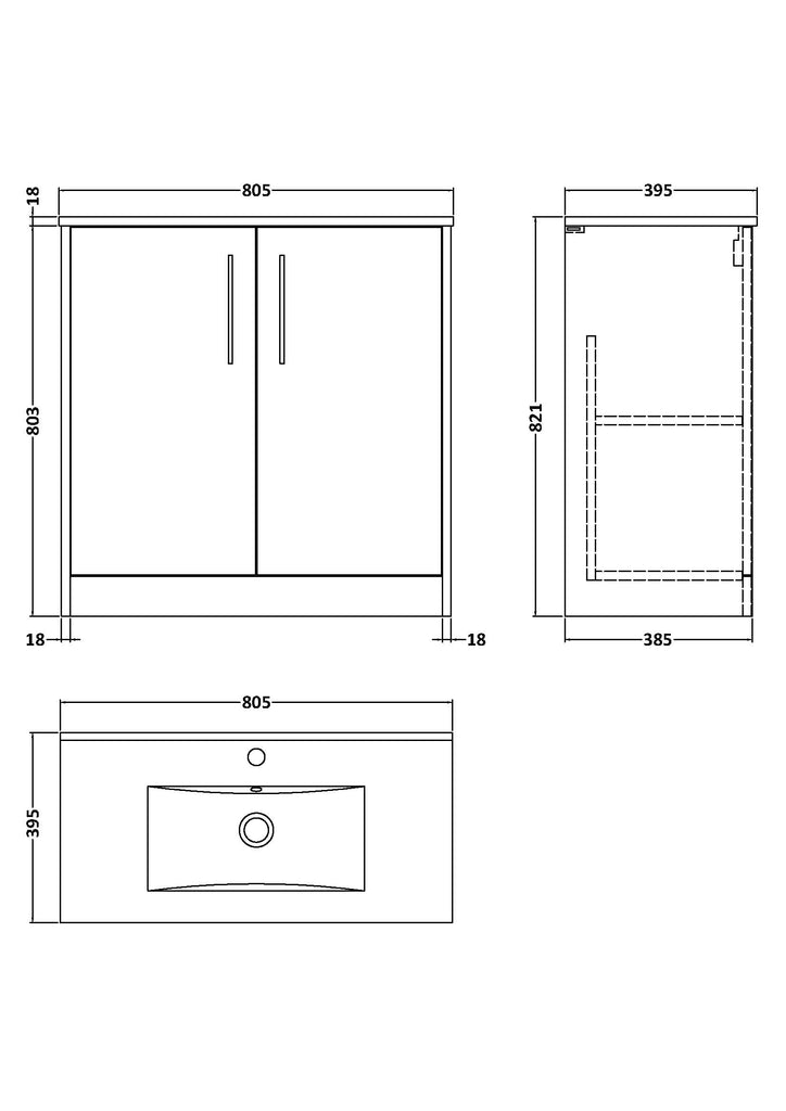 Hudson Reed 800mm Floor Standing 2 Door Vanity & Basin 2