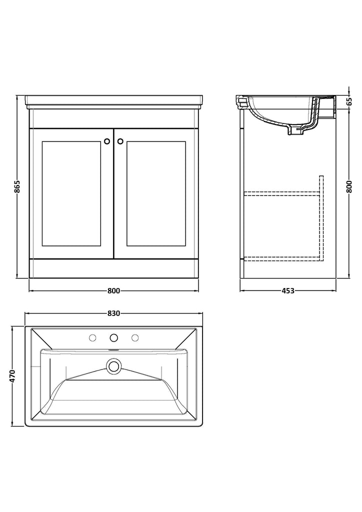 NUIE 800mm Floor Standing 2-Door Vanity & Basin 3TH
