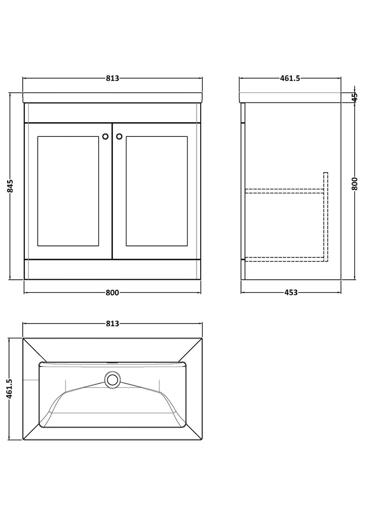 NUIE 800mm Floor Standing 2-Door Vanity with Basin - 0 Tap Hole