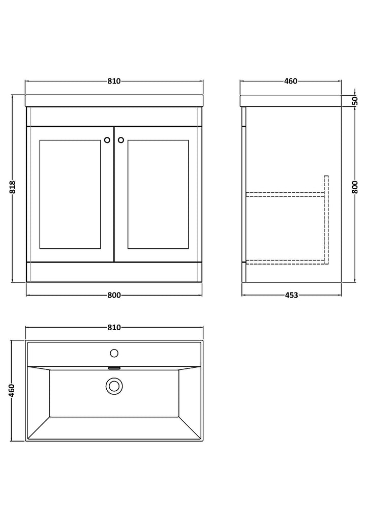 NUIE 800mm Floor Standing 2-Door Vanity with Basin - 1 Tap Hole