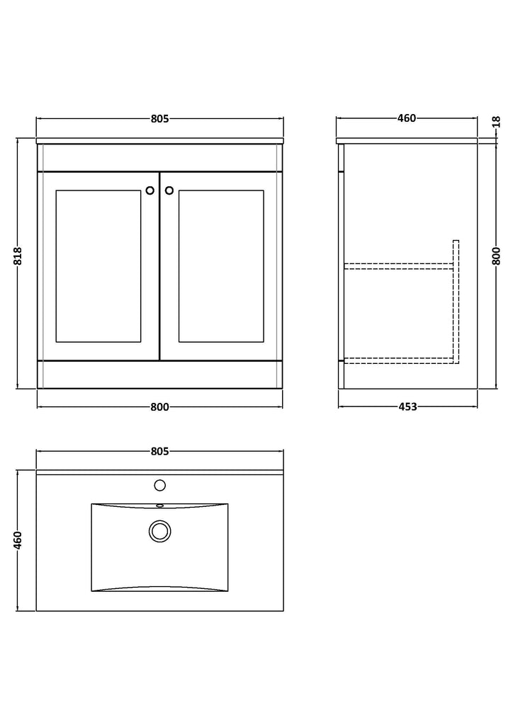 NUIE 800mm Floor Standing 2-Door Vanity with Basin - 1 Tap Hole