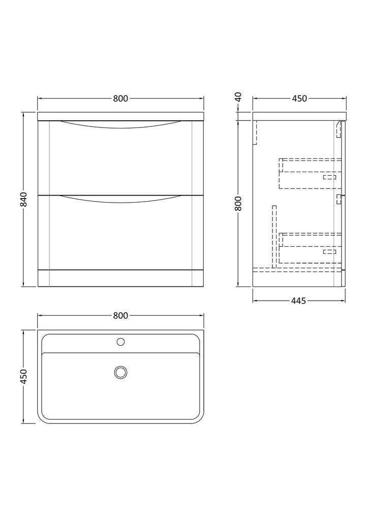 NUIE 800mm Floor Standing 2 Drawer Vanity & Polymarble Basin
