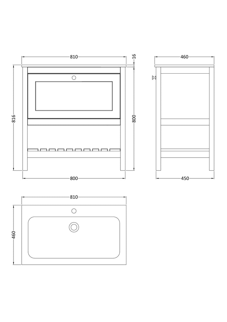 Hudson Reed 800mm Floor Standing Drawer & Stone Basin 1TH