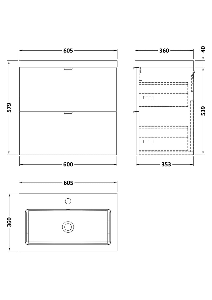 Hudson Reed 600mm Wall Hung 2-Drawer Unit & Basin