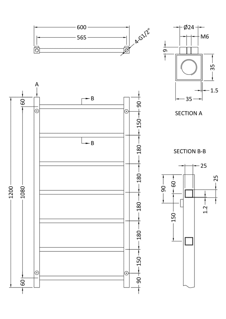 Elegant lines and a contemporary finish make this towel rail the perfect on trend addition to your bathroom. Suitable for use with heating elements. All heating products come complete with fixing screws. Valves sold separately. After installating any new radiators; when refilling the system it is recommend a suitable inhibitor is used. All tappings are 1/2 British Standard Pipe. We recoend pipework is not installed until receipt of radiator or heated towel rail.