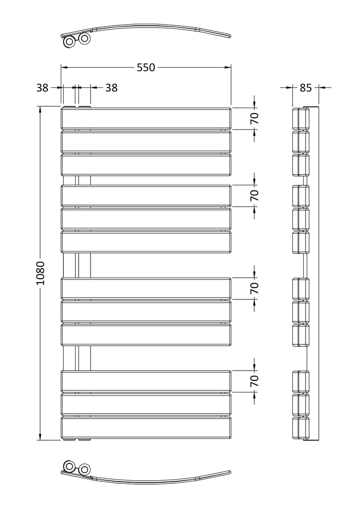 Elegant lines and a contemporary finish make this towel rail the perfect on trend addition to your bathroom. Suitable for use with heating elements. All heating products come complete with fixing screws. Valves sold separately. After installating any new radiators; when refilling the system it is recommend a suitable inhibitor is used. All tappings are 1/2 British Standard Pipe. We recoend pipework is not installed until receipt of radiator or heated towel rail.