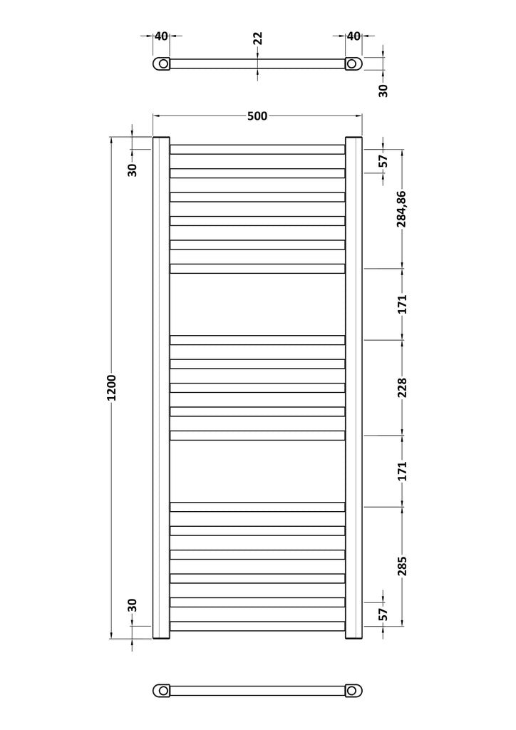 NUIE Round Straight Towel Radiator 1200x500