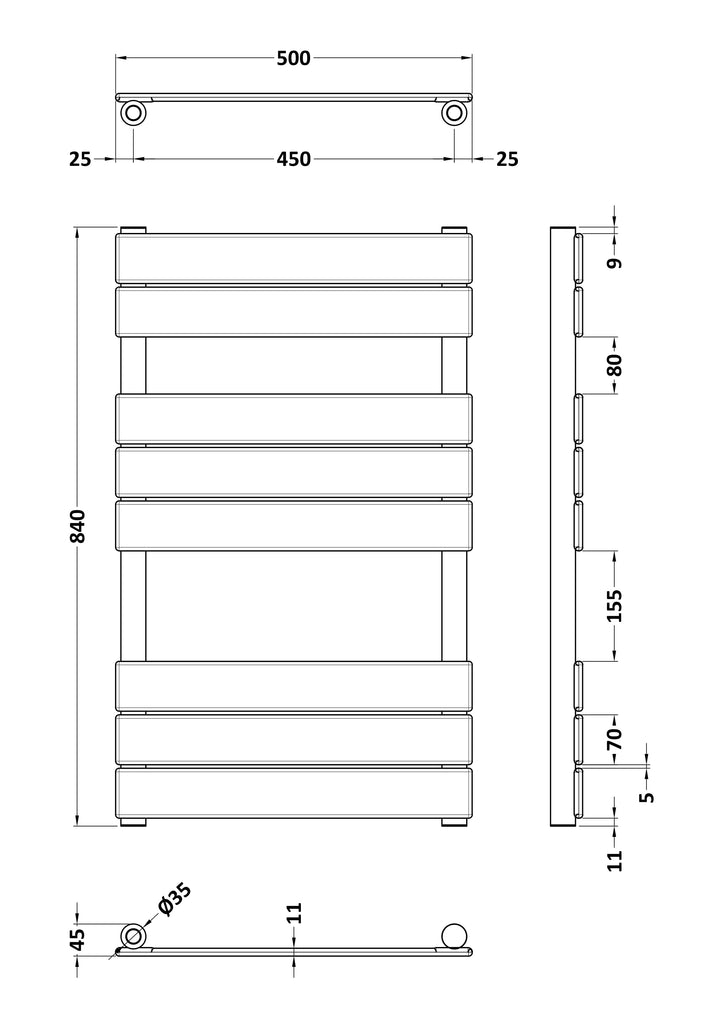 NUIE Square Flat Towel Radiator 840x500