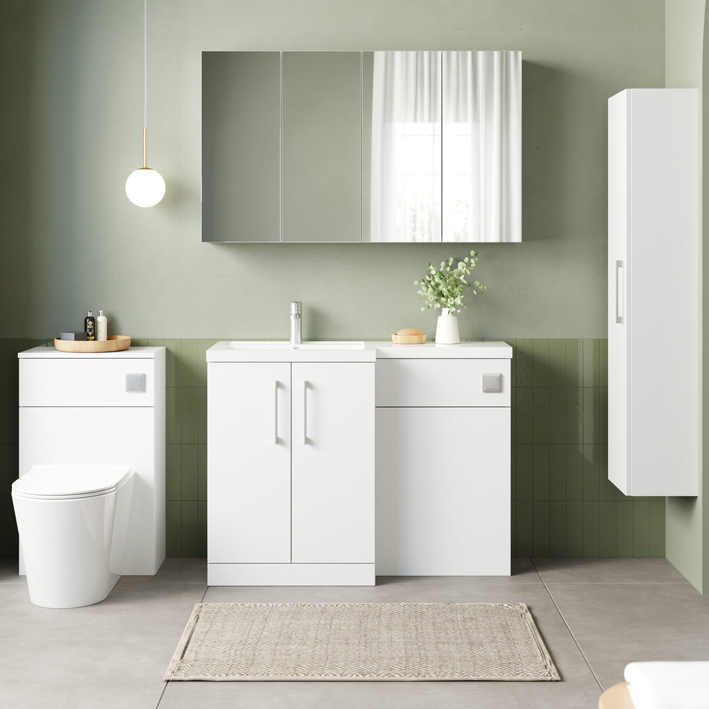 Contemporary floor standing design provides ample storage for all your bathroom toiletries and cleaning supplies. Available in a variety of sleek colour ways. Soft close doors ensures peace ensues throughout your home. Supplied rigid for easy installation. Polymarble basin pre-drilled with 1 tap hole.