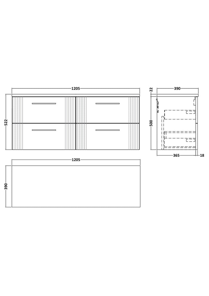 NUIE 1200 Wall Hung 4-Drawer Vanity & Laminate Worktop