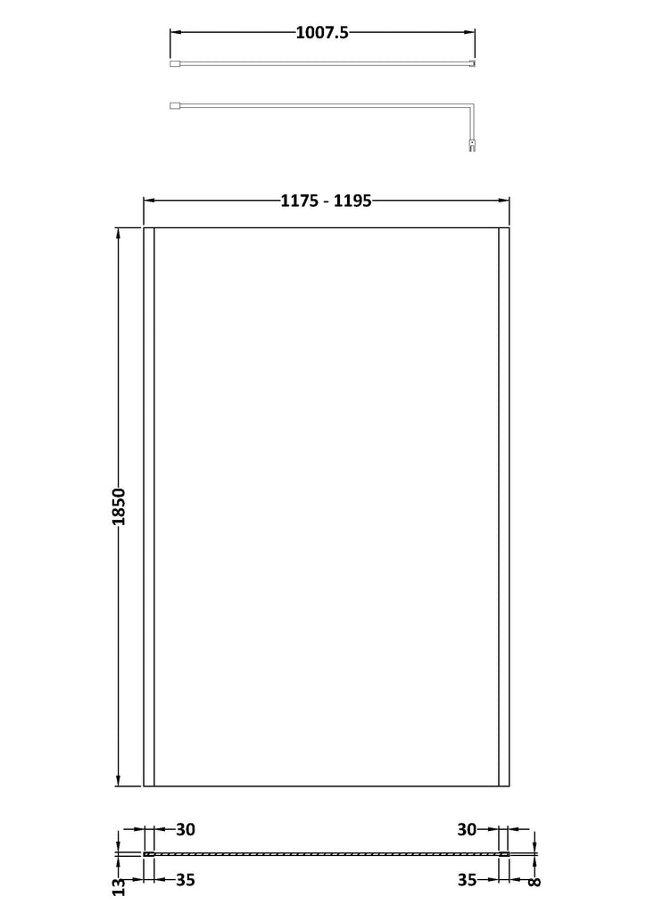NUIE 1200mm Outer Framed Wetroom Screen with Support Bar