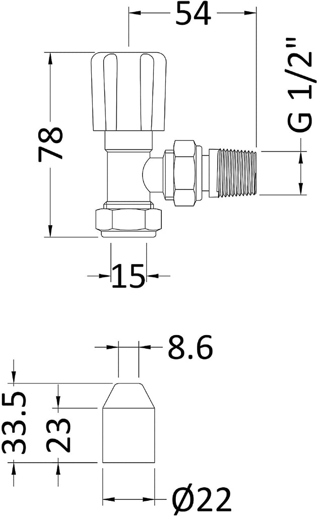 Nuie RV003 | Modern Bathroom Angled Radiator Valve, 78mm x 30mm, Chrome