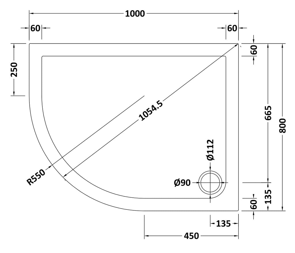 NUIE Offset Quadrant Shower Tray LH 1000 x 800mm